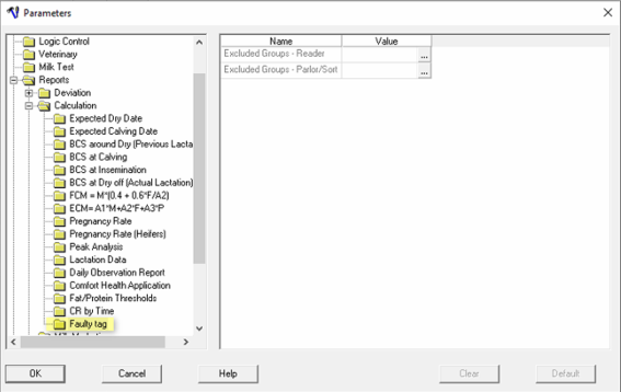 Группы могут быть исключены из списка считывающих устройств Reader дальнего действия и (или) из списка доильного зала/сортировки ближнего действия: