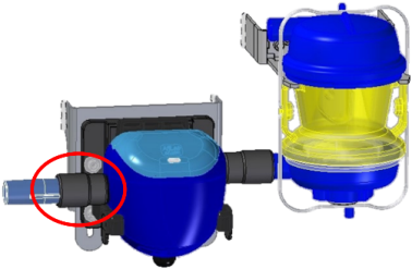 Připojte vývod nové jednotky AfiLab k pryžové spojce pro hadici nahrazující vzorkovač.