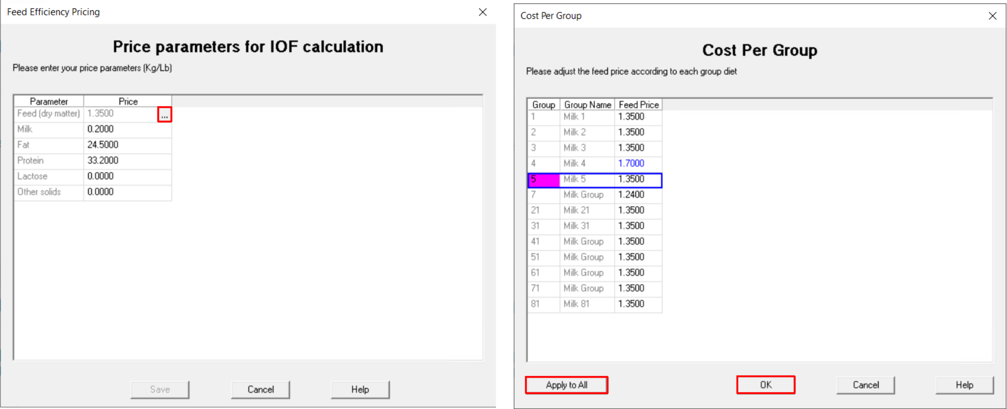 חיוני לשמור על עדכניות הנתונים לגבי עלות המזון והכנסה לפי מחיר החלב (תשלום לפי חלב, שומן, חלבון, לקטוז ועוד) על מנת להשיג תוצאות מדויקות של הכנסה לאחר הוצאות מזון.