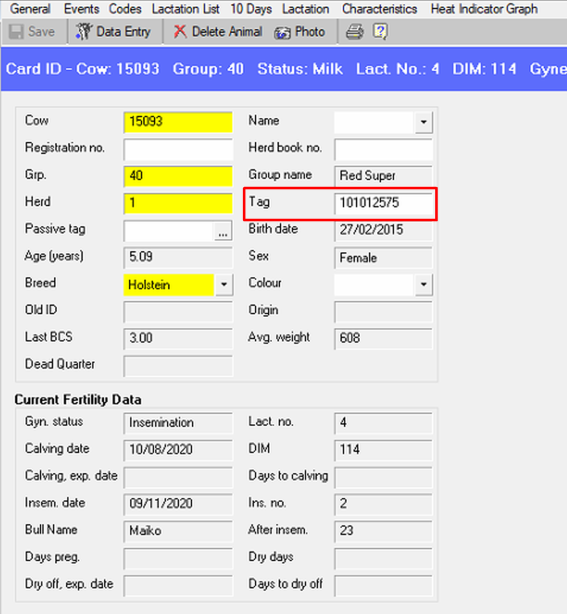 Nota: Se stai riutilizzando un tag rimosso da un altro animale, assicurati di aggiornare la scheda vacca dell'animale da cui è stato rimosso il tag.