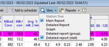 The Detailed report (stall) presents the milking efficiency per stall for all the valid cows milked with that group.