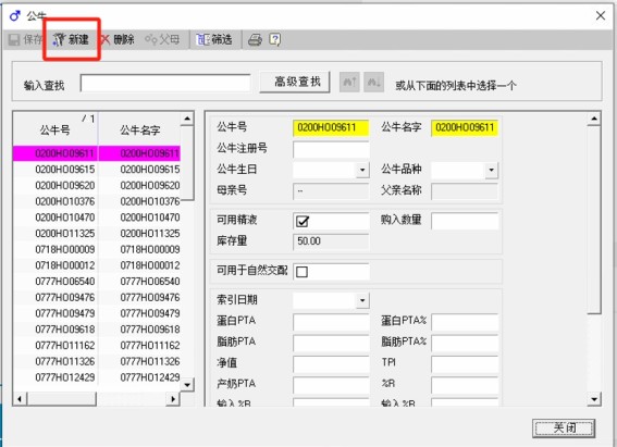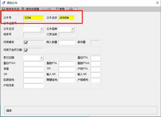 在阿菲牧(AfiFarm)数据库添加一头新公牛,方法如下: