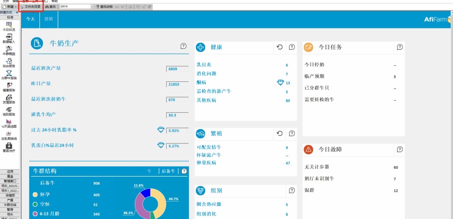 1. 在打开的阿菲牧(AfiFarm)系统窗格中,点击动物文件夹,然后点击公牛