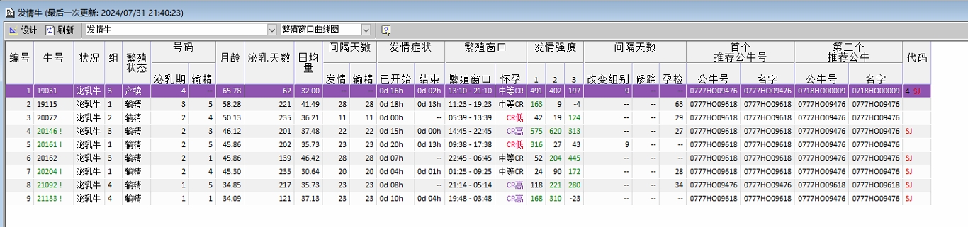当前时间标记器在图表上移动,实时显示了奶牛距离发情周期开始时间有多远,以及她离高受胎率(CR)的时机有多近。