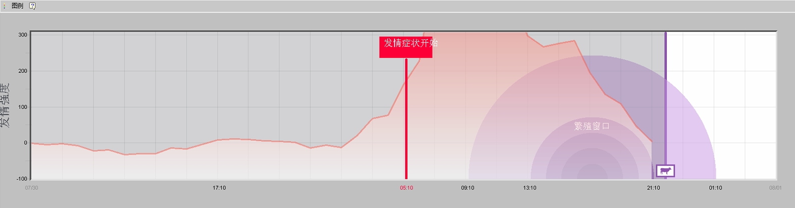 图表中的红色图例跟踪显示发情数据。