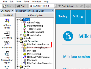 展开牛奶生产文件夹,然后点击牛奶生产报告。