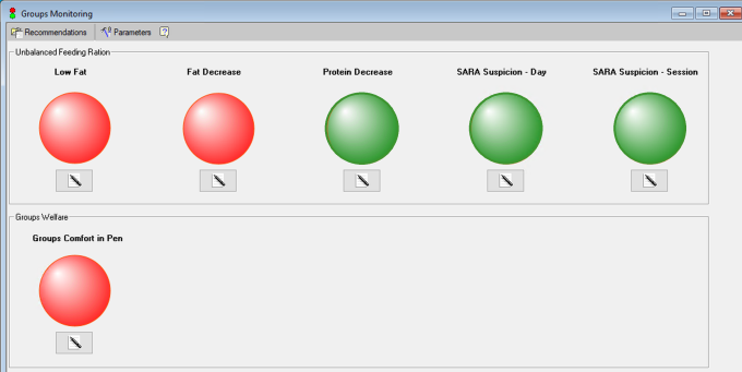 红色:表明在一个或多个挤奶班次、一个或多个牛群中出现亚临床酸中毒(SARA)症状。 |