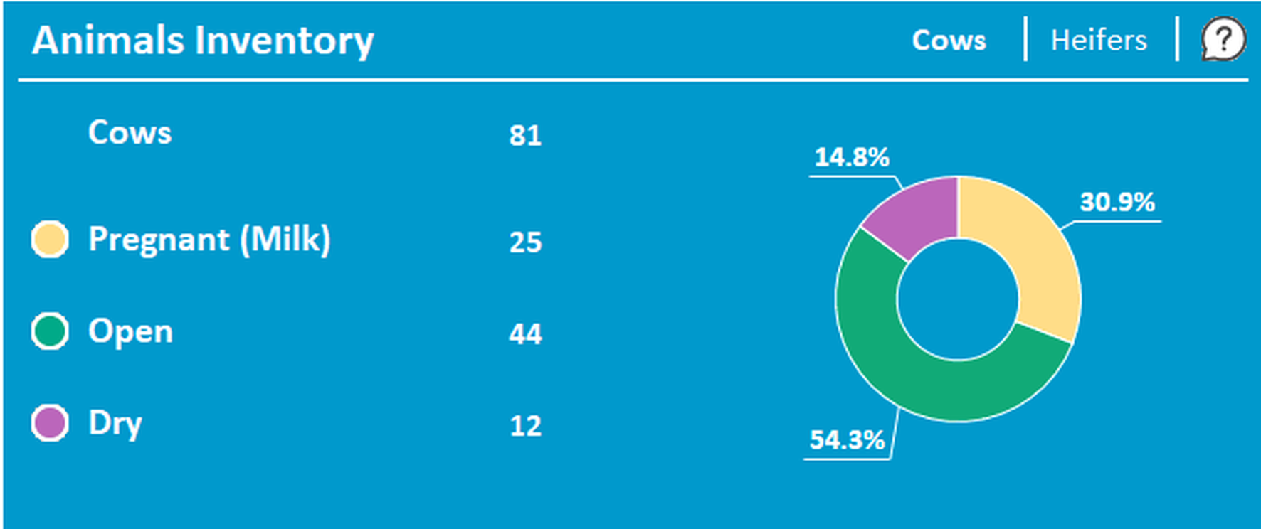 View the total number of cows and heifers on the farm – distributed according to their fertility statuses: