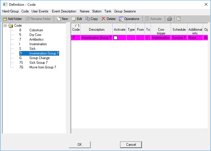 Therefore, to ensure animals from Group 7 are sorted during their morning milking session, we need to build a unique set of codes, which operate during the morning session alone, for these cows.