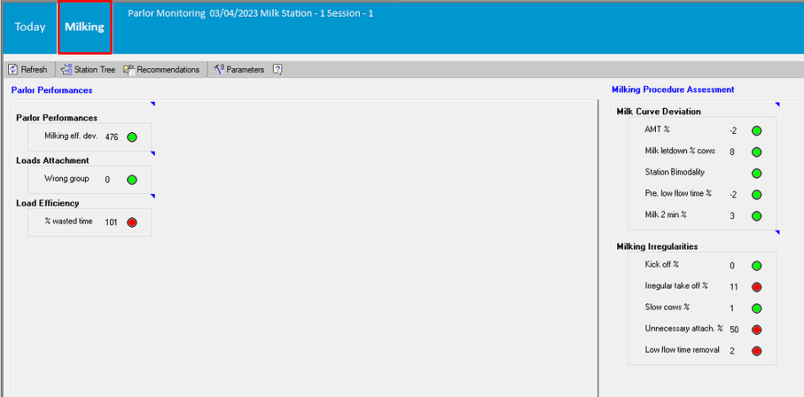 Use the Parlor Monitoring interface to review indicators related to specific aspects of milking quality.